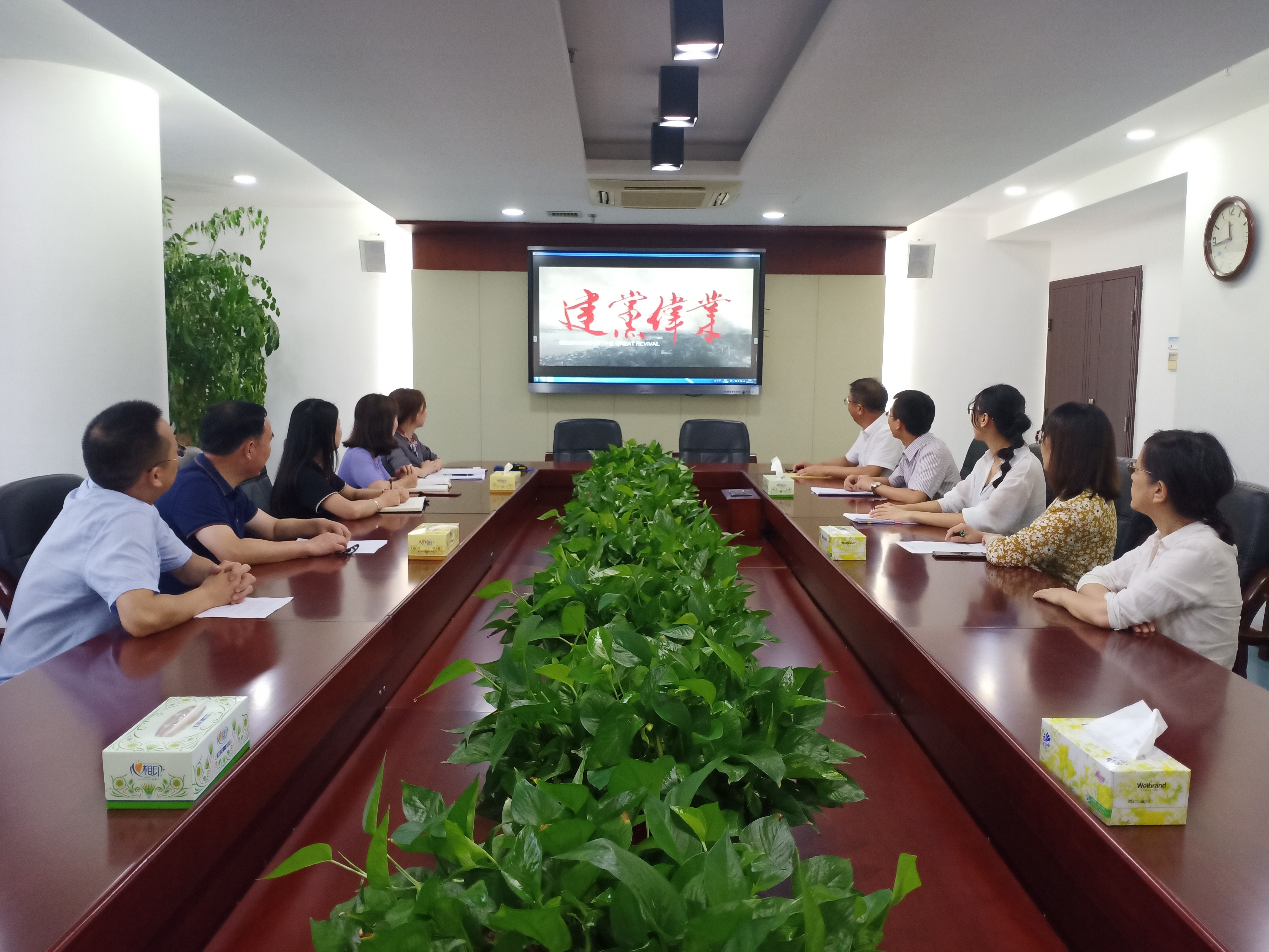 为隆重庆祝中国共产党99岁生日,教育引导党员进一步加强党性锤炼,切实增强党员的先进性和纯洁性,7月10日上午,党政办党支部在一办四会议室组织开展了以“寻初心、守初心、践初心”为主题,观看“光影铸魂”红色影片《建党伟业》党日活动。党委书记付宏渊以普通党员身份参加活动,活动由支部书记周艳红主持。