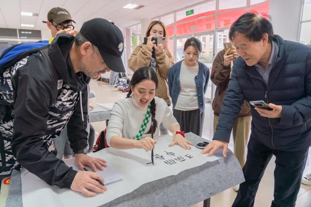 “在老师的指导下,我学会了毛笔的正确握笔姿势!中国书法艺术果然博大精深!”来自孟加拉国的爱德华同学激动表示。怀着对书法的热爱,爱德华同学慕名前来请教秦黎明老师书法技艺。从握笔姿势到写字姿势,秦黎明老师对他进行了“一对一”指导。