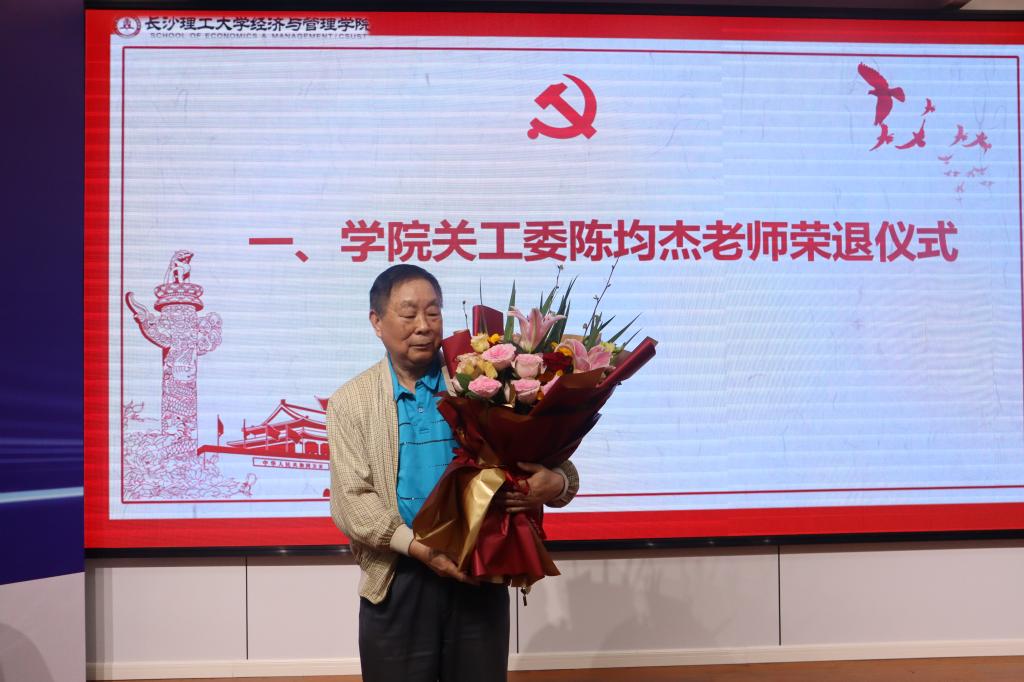 会议伊始,学院为陈均杰老师举行了隆重的荣退仪式和新关工委成员接力仪式。陈均杰发表感言,对学院在科研、教学、党建、关工委等方面取得的成绩表示了祝贺。他回顾了自己在学院工作的历程,表达了对组织关心与爱护的感激。随后,新加入学院关工委的宋建设和黎月娥一起上台接力,学生代表为三位老师送上鲜花,对陈老师的辛勤工作表达了诚挚的感谢,对宋老师和黎老师的加入表示了欢迎。