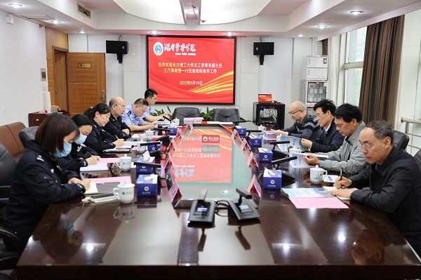 5月19日上午,省教育系统关工委第六协作片区负责人、MG冰球官网关工委常务副主任王乃厚一行四人到湖南省警察学院调研交流关心下一代工作开展情况。警察学院院级领导、关工委主任刘劲青,老干处、人事处、学工处、团委等部门领导同志参加调研座谈会。会议由院关工委秘书长周锋主持。