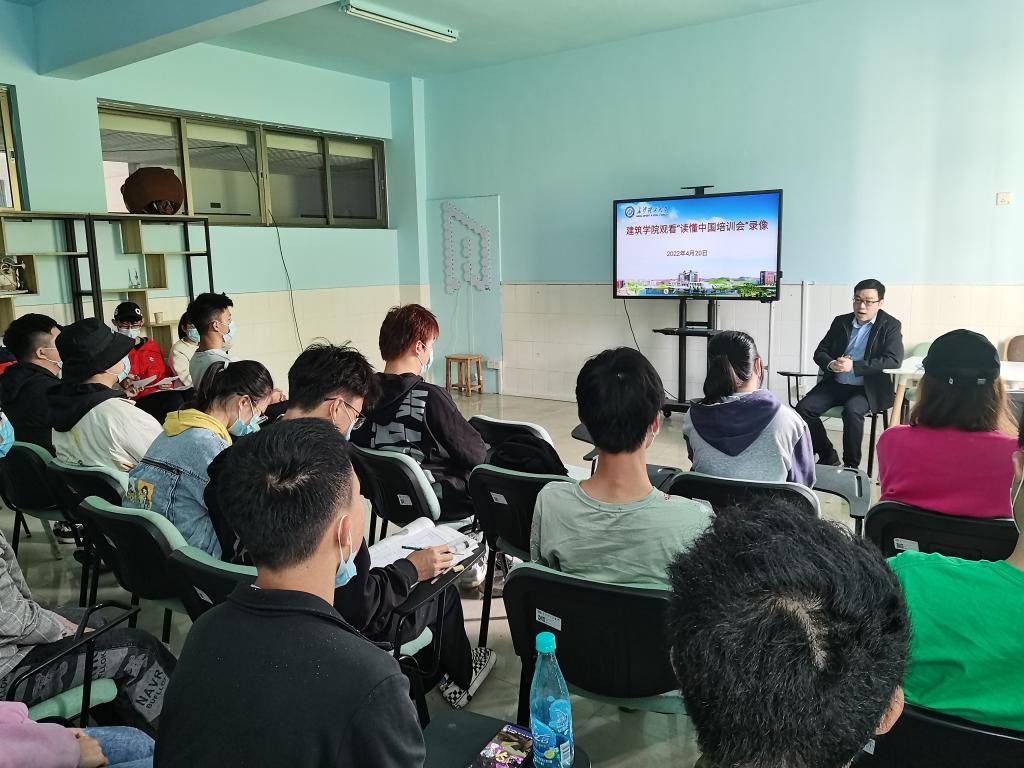 为帮助我院学生进一步了解“读懂中国”活动开展情况,提升征文写作方法和技巧。4月20日上午,建筑学院于16号教学楼组织观看了“读懂中国培训会”录像,建筑学院党委副书记、关工委主任李家春、年级辅导员郭恒、各年级学生代表参与观看,会议由郭恒主持。