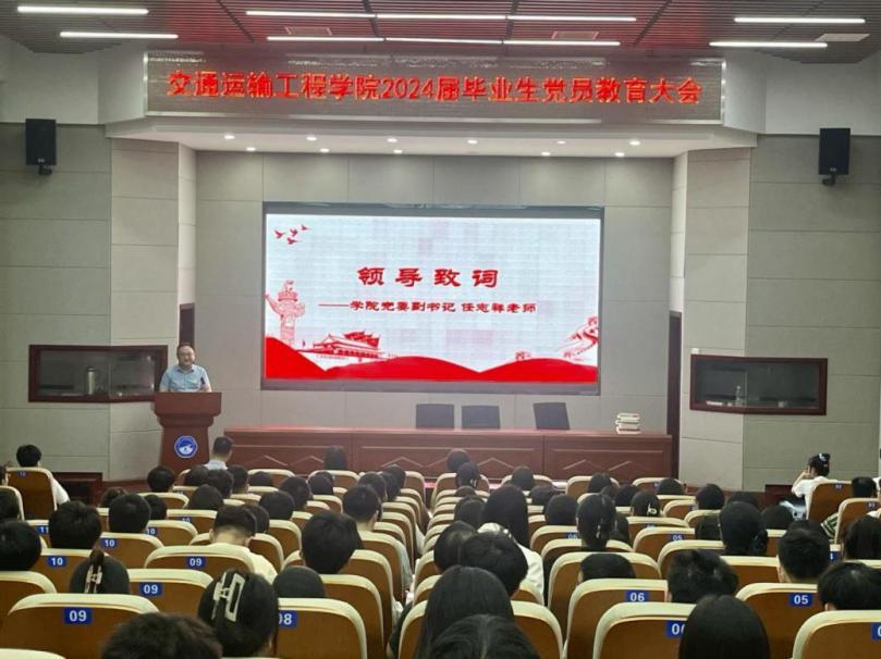 5月21日,交通学院2024届毕业生党员教育大会在工二交通科技报告厅举行,学院党委副书记任志祥、学院特邀党建组织员吴滨、研究生辅导员李文博、毕业生辅导员冯心崚及2024届全体毕业生党员参加,党建辅导员肖敏强主持。
