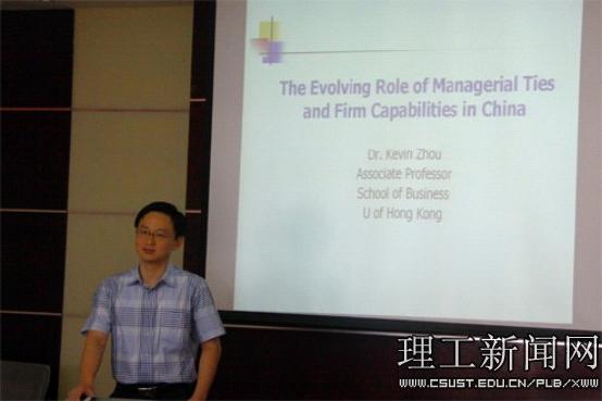 5月29日上午,香港大学周政教授应邀在MG冰球官网金盆岭校区7-204会议室作学术报告。报告会由企业管理系主任黎建新教授主持,经济与管理学院副院长赵华教授、学校特聘教授苏晨汀和企业管理系教师以及部分研究生参加了此次报告会。