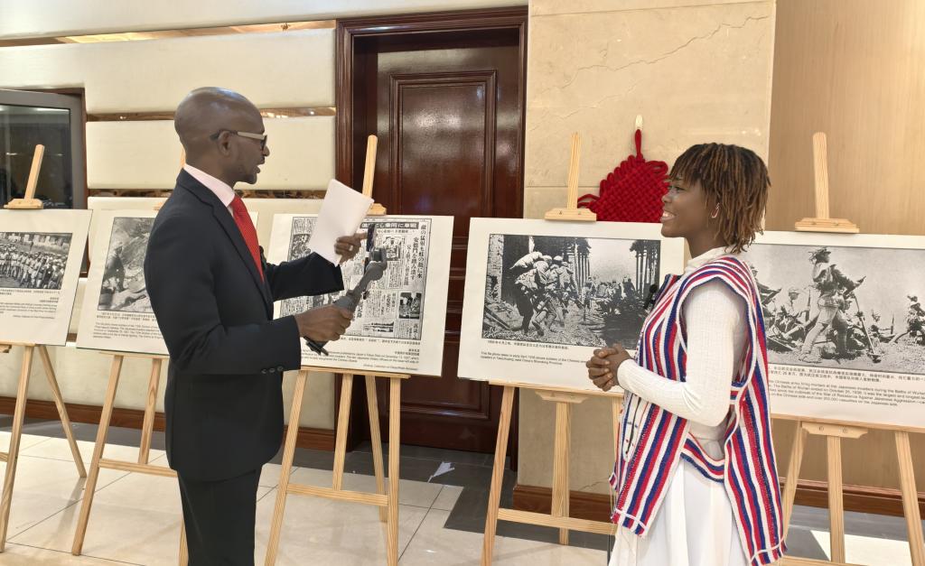 招待会伊始,尹承武大使在致辞中回顾了中国在过去几十年取得的发展成就,强调了中国人民抗日战争暨世界反法西斯战争胜利对中国和世界和平的重要意义,提及台湾光复80周年的历史时刻,并感谢包括非洲国家在内的国际社会在抗战时期对中国的宝贵支持。大使还介绍了近年来中非合作的新进展,特别是习近平主席提出的一系列对非合作倡议,彰显中非携手共赢的良好局面。