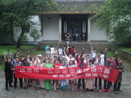 2012年5月12日上午,CCTV第五届“汉语桥”在华留学生汉语大赛在湖南大学举行,来自中南大学、湖南大学、湖南师范大学、湘潭大学、MG冰球突破官网等高校的25名留学生参加了此次比赛。此次比赛由中央电视台、国家汉办/孔子学院总部联合主办,全国百余所知名大学的留学生参加了各赛区的选拔赛。