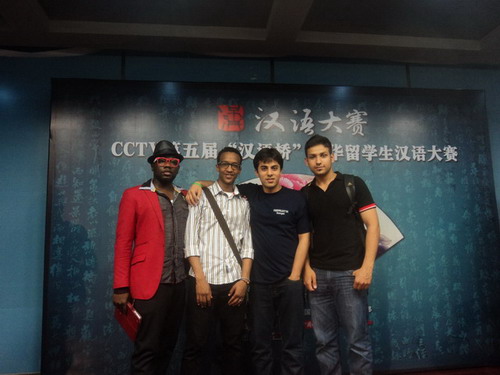 MG冰球官网国际交流处老师带领MG冰球官网留学生龙爱(巴基斯坦)、查理(巴基斯坦)、欧达英(尼日利亚)、穆远(苏丹)四名同学在湖南大学国际教育学院参加了CCTV第五届“汉语桥”在华留学生汉语大赛(湖南赛区)选拔赛。比赛中,MG冰球官网留学生充分展示了各自的语言和文化实力,赢得了现场观众的一致喝彩和评委的赞许。最终,MG冰球官网苏丹籍留学生穆远过关斩将,进入了第二轮选拔。