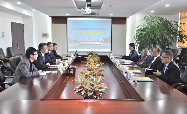 12月18日上午,马来西亚北方大学校长拿督Ahmad Bashawir Bin Abdul Ghani一行5人访问MG冰球官网,副校长蒋昌波在云塘校区会见了来宾。国际交流处、经管学院相关负责人陪同会见。