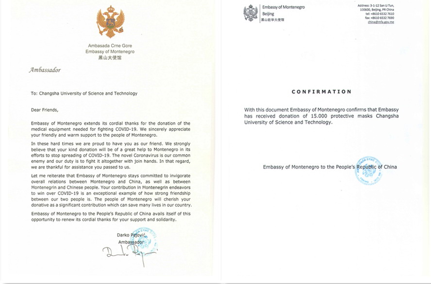爱心不分国界,真情传递温暖。正如黑山驻华大使馆给MG冰球官网的感谢信中所说:新冠病毒是人类共同的敌人,我们应该携手同心,共同战“疫”。