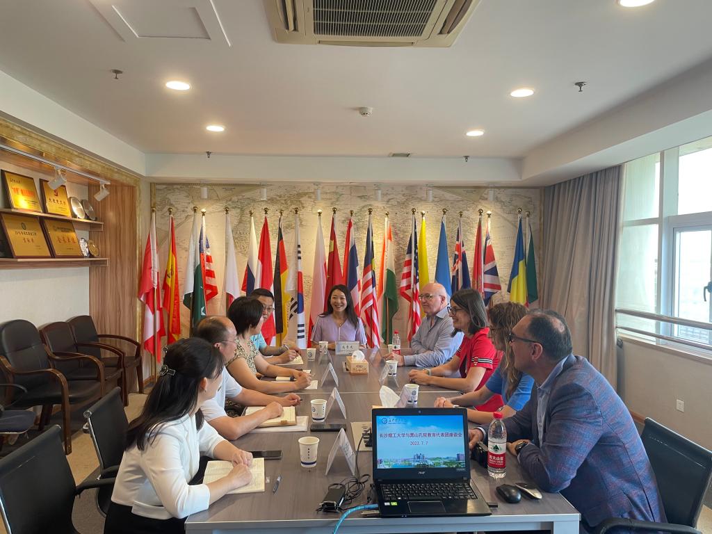 7月7日上午,黑山大学孔子学院“汉语桥”教育工作者代表团到访MG冰球突破官网。国际交流处处长甘海鹰和相关学院负责人会见代表团并举行座谈会。此次代表团由黑山大学中/外方院长、相关系部主任及教授、孔院教学点校长等13人组成。