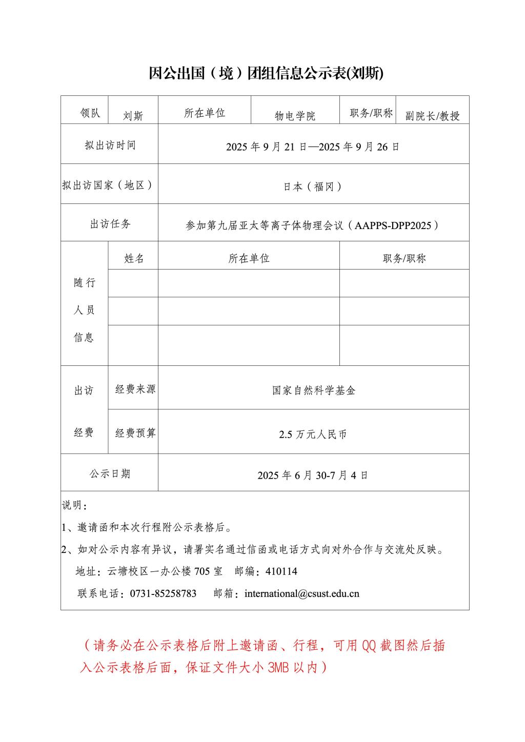 因公出国(境)团组信息公示表(孙小琴等2人)