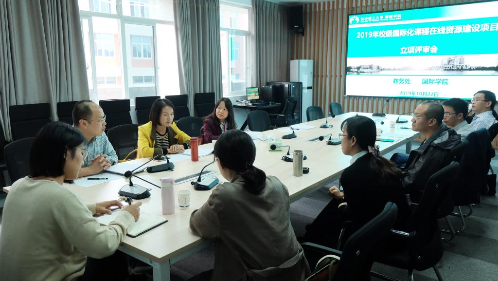 10月22日下午2点学校教务处委托国际学院组织专家在新能源大楼1栋416会议室召开第二批国际化课程在线资源建设项目立项评审会,来自土木、交通、水利等学院的6名专业老师参加了答辩。本次评审由化学与生物学院李丹、能源与动力工程学院冯磊华、信息化建设管理与现代教育中心付强担任专家评委。国际学院副院长秦卫星、中外合作办学教务办公室负责人罗帅参加。
