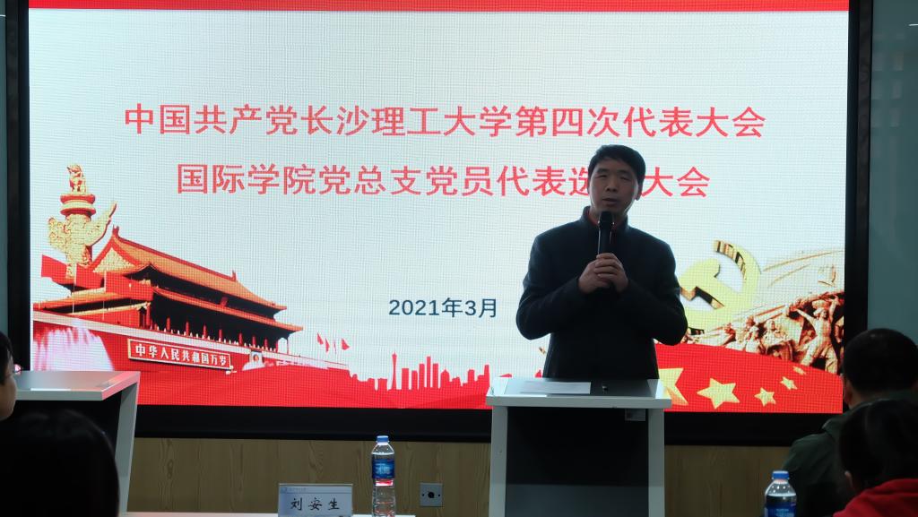 3月9日下午,国际学院党总支在新能源1号楼404室召开全院党员大会,选举出席中共MG冰球突破官网第四次党代会代表。会议由党总支书记刘安生主持,全院师生党员参加大会。