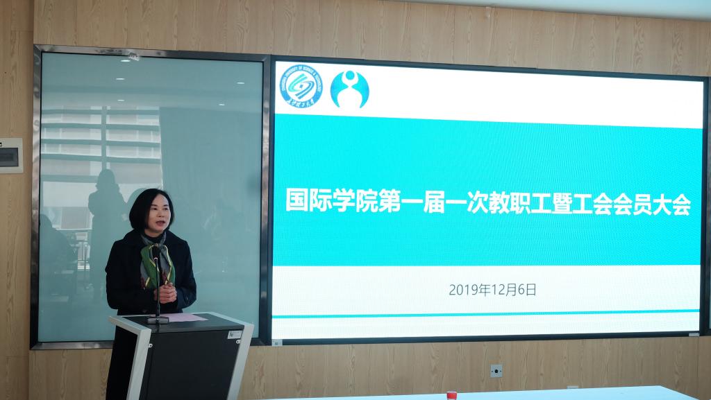 12月6日下午,国际学院第一届一次教职工暨工会会员大会在新能源大楼1栋404室举行。国际学院全体教职工参加会议,学校党委委员兼学院党总支书记付嫦娥主持会议。