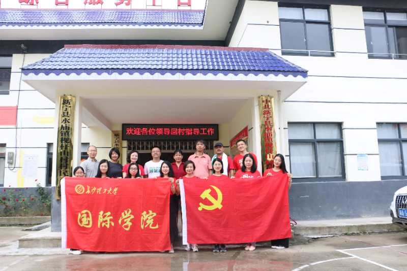 7月4日,国际学院党总支书记刘安生、院长陈瑜带领学院教职工一行13人冒雨赴MG冰球官网扶贫点新宁县水庙镇枧杆山村开展了爱祖国、爱劳动工会活动。校驻村扶贫队长宋刘斌等陪同参加。