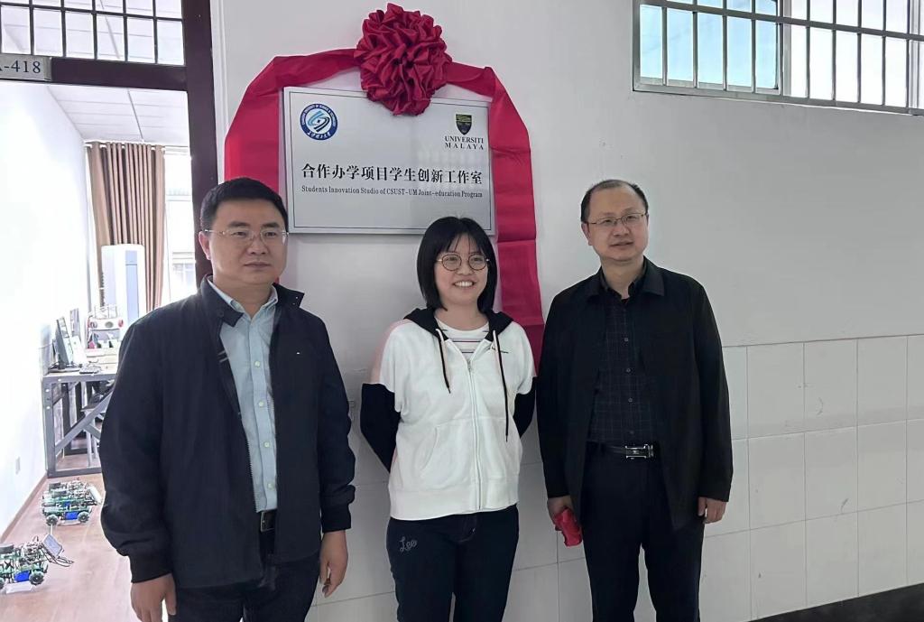会上,胡林对国际工学院一行来学院交流表示热烈欢迎。首先,胡林、吴迪龙分别介绍各自学院的办学情况。随后,双方就合作办学项目评估、师资共享、外方优质教育资源吸收、来华留学生教育以及马来亚大学国际交流等方面进行了详细讨论。双方表示将进一步加强科技创新、实习实践等方面的学生培养以及中外教师的教学合作。最后,吴迪龙院长代表国际工学院再次向汽机学院长期以来的支持表示感谢,并与胡林院长共同为吴悠博士的合作办学项目学生创新工作室揭牌。