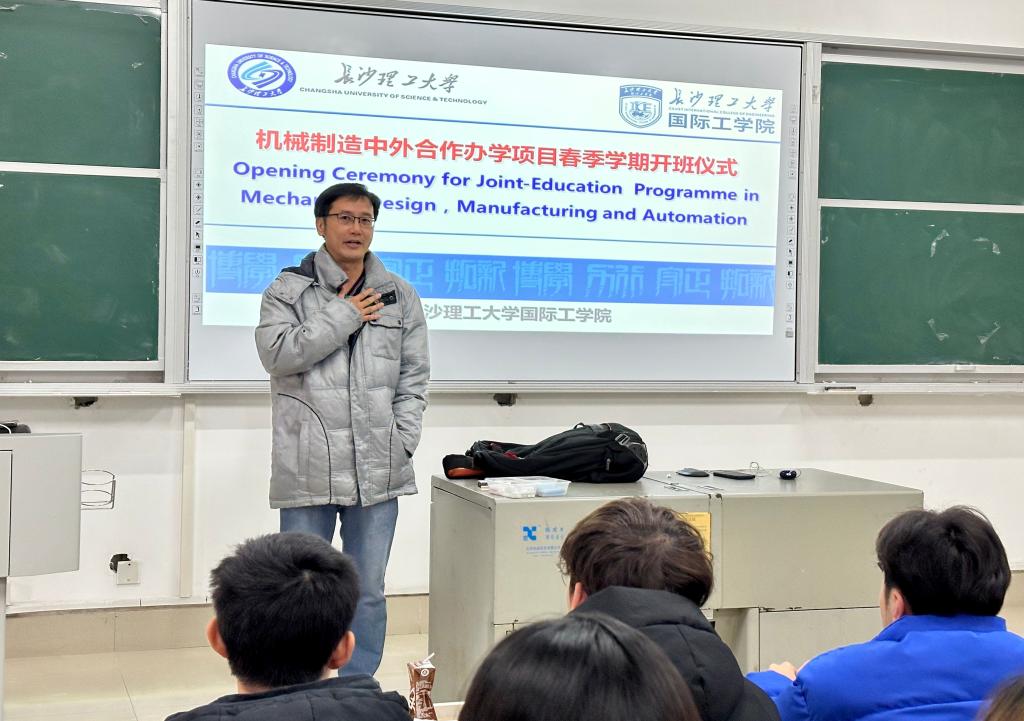 3月4日下午,2023-2024春季学期中外合作办学项目(机械设计制造及其自动化专业)2022级引进课程Engineering Thermodynamics(工程热力学)在云塘综合教学楼顺利开课。课程由马来亚大学Tan Chou Yong教授承担教学工作。
