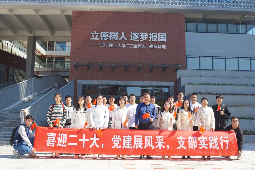 为喜迎党的二十大胜利召开, 2022年10月12日上午10:30,国际工学院党总支副书记兼副院长乔法光、机电教改1901班党支部书记文可可、土木教改1901班党支部书记马玉文、党建辅导员易芙蓉,以及两个班级党支部全体党员来到MG冰球突破官网“立德树人,逐梦报国”为主题的“三全育人”教育基地开展主题党日活动,深刻学习党领导高等教育发展的历史进程,追寻学校66年的办学足迹和办学印记,领悟成长为让党放心、祖国和人民需要的“先锋分子”的时代感召。