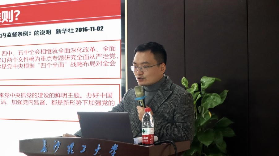 11月14日,党总支书记王学成在工科三号楼A307作题为《关于新形势下党内政治生活的若干准则》专题党课,国际工学院全体学生党员参加。