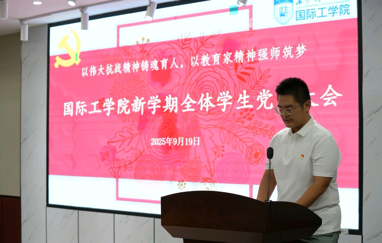 9月19日,国际工学院在文科楼D207报告厅召开新学期全体学生党员大会。学院党委副书记兼副院长黄黎明、各学生党支部书记及全体学生党员参加,会议由学生党务中心主席王乐储主持。