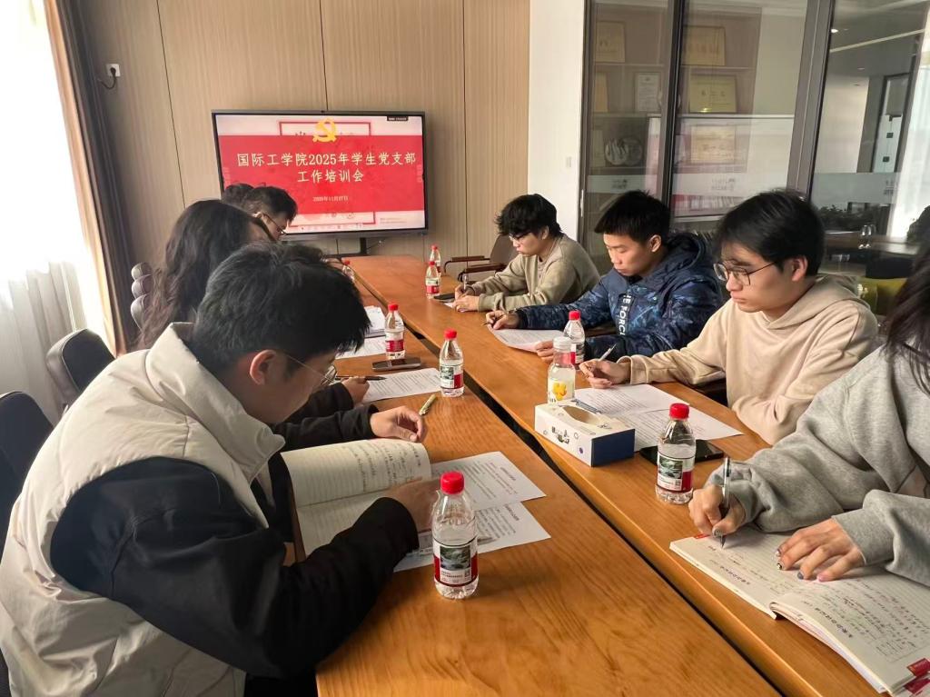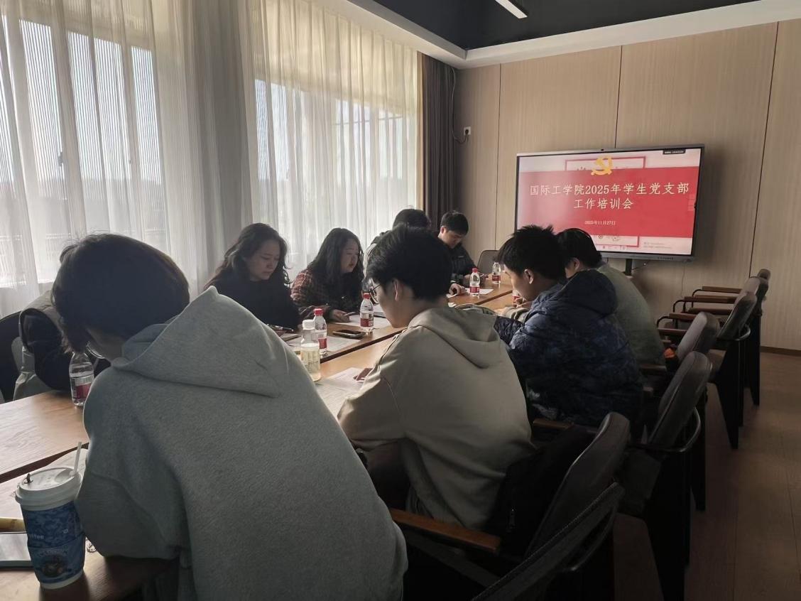 11月27日上午,国际工学院于文科楼E511开展2025年学生党支部工作培训,培训由学生党建辅导员易芙蓉老师主持,学院各学生党支部书记、支部委员及学生党务中心主要干部参加。
