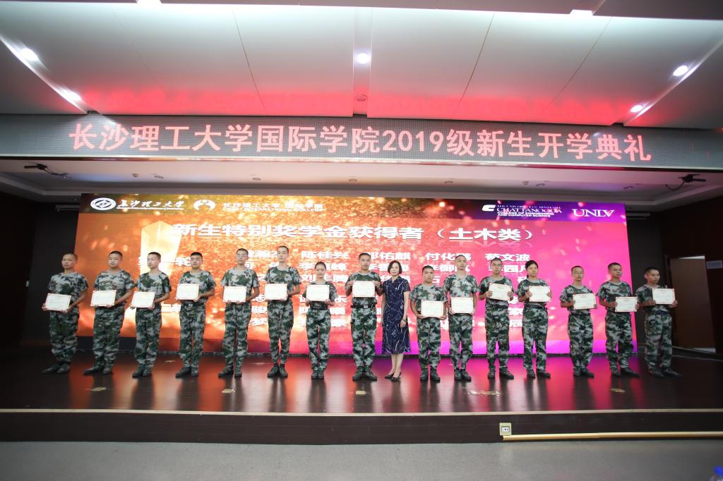 在本次开学典礼中,国际学院还举行了晨跑队成立仪式,副校长蒋昌波为晨跑队授旗。交通运输工程学院副院长何忠明、土木工程学院副院长陈伏彬、电气与信息工程学院副院长唐欣为新生代表赠送队服,鼓励学生在运动中增强体质、锤炼意志、培养奋斗精神。
