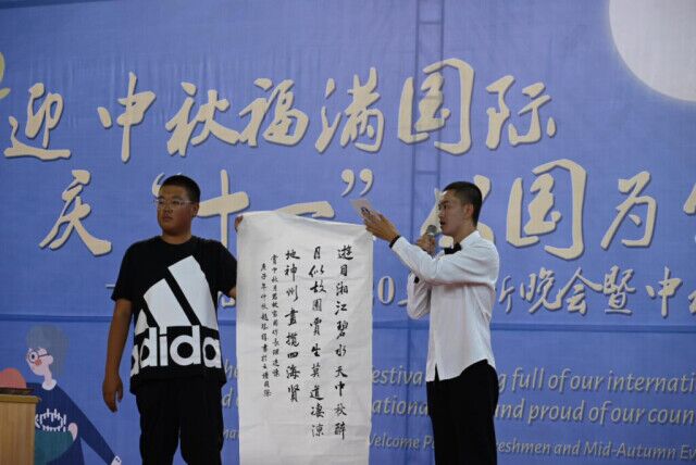 “最爱湘江两岸山,中秋醉月似故园。贾生莫道凄凉地,神州尽揽四海贤。”国际学子化笔墨为桥梁、化诗书为言语,欢聚一堂共庆双节。10月1日,在MG冰球突破官网国际学院2020年中秋晚会暨国庆晚会上,中国学子现场题诗,并带领来华留学生尝试书法,加强了来华留学生知华友华,促进了中外学生的友好交流,也进一步激发国际学子的爱国热情,弘扬中国传统文化。
