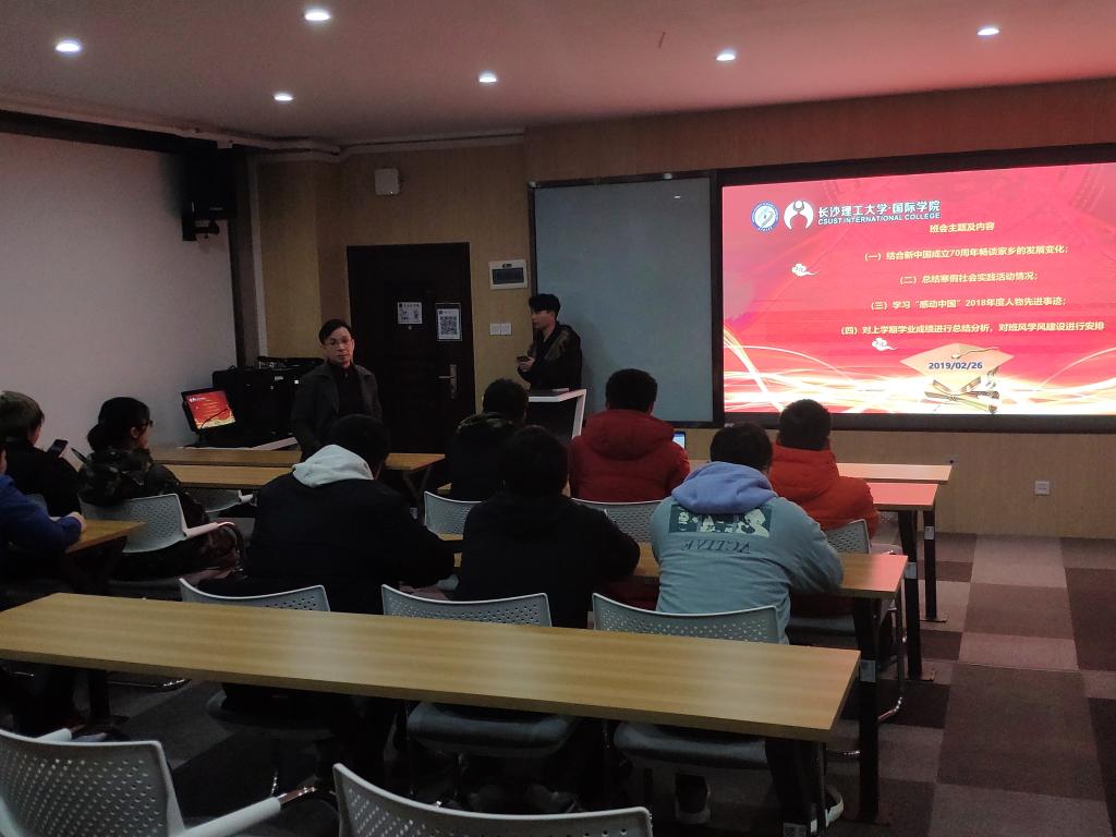 为深入贯彻落实习近平总书记关于教育的重要论述精神,全面了解掌握学生的思想状况;强化底线思维,加强日常教育管理;引导学生潜心学习,不断增强大学生责任感和使命感,按照学校统一部署,2月24日晚至26日,国际学院全体学生班级召开了新学期第一次主题班会。班会由各班班主任主持并全程参与。