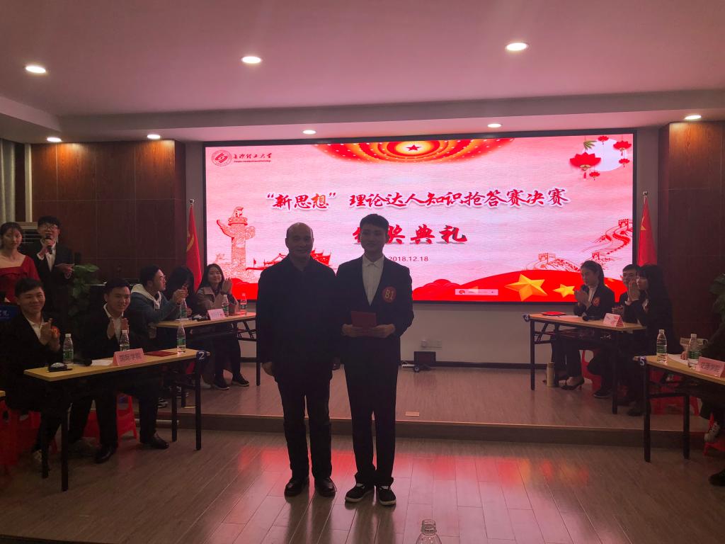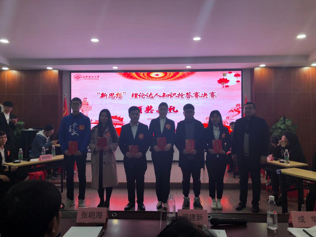 12月18日晚,由校学生工作部(处)主办的MG冰球突破官网“新思想”理论达人知识抢答赛决赛在云塘校区工三B319举行。校宣传部、学生工作部(处)等部门负责人和马克思主义学院专家担任大赛评委。2016级学生张微东、刘柯、郭洋代表学院参赛,在决赛中发挥出色,以团体总分第一名的成绩夺得冠军,其中郭洋获评最佳选手。