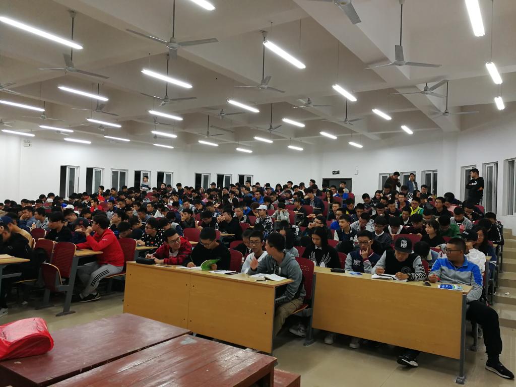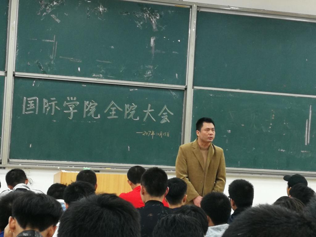 10月15日晚7点,国际学院在文科楼B-300召开教学审核评估工作全院学生再动员大会,学院党委副书记吴振华,辅导员刘森峙和全院15、16、17级全体学生参加会议。