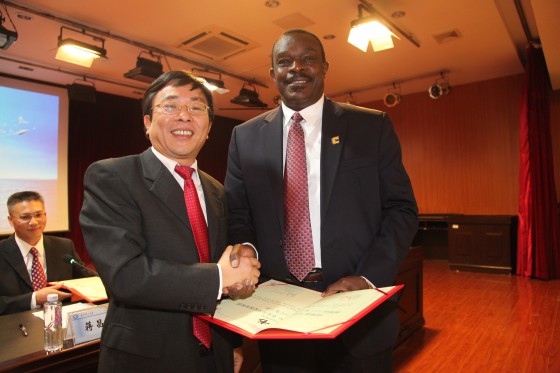 下午,国际学院2015级新生开学典礼在文科楼B204召开。校长赖明勇、副校长蒋昌波、党政办主任敖洁、国际交流处处长吴迪龙、美国田纳西大学查塔努加分校代表Joseph Owino、 Ignatius Fomunung、土建学院副院长王磊、教师代表刘小燕教授、国际学院全体领导班子和老师、新生班主任、留学生及2015级新生及家长代表参加了会议。典礼由蒋昌波主持。