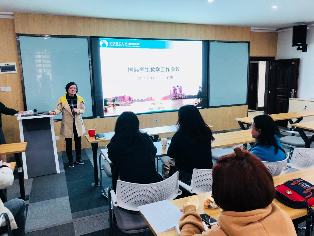 3月26日下午,国际学院2018-2019学年第二学期国际学生教学工作会议在新能源大楼404教室召开,会议旨在增进教学与管理之间的了解和衔接,让管理工作更好地服务于教学一线。国际学生的任课教师、国际学院院长陈瑜、副院长甘海鹰以及国际学生工作办公室的全体老师参加了会议。