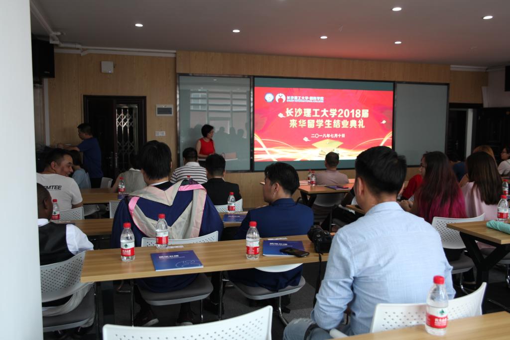 7月10日上午,MG冰球官网2018届来华留学生结业典礼在国际学院举行。国际学院院长陈瑜、副院长秦卫星、大学生学习与发展中心负责人汤路以及国际学生工作办公室的全体老师出席典礼。结业典礼由学院党委副书记兼副院长吴振华主持。