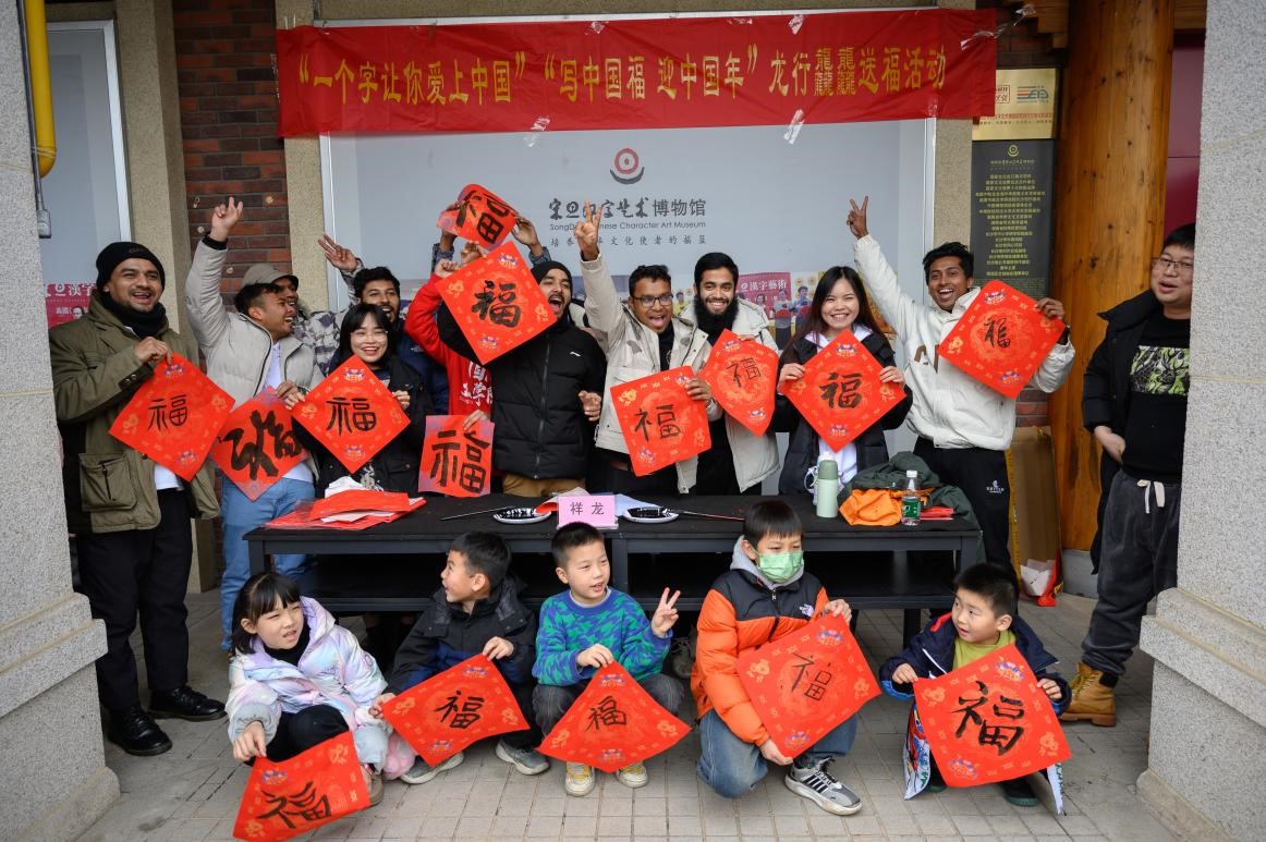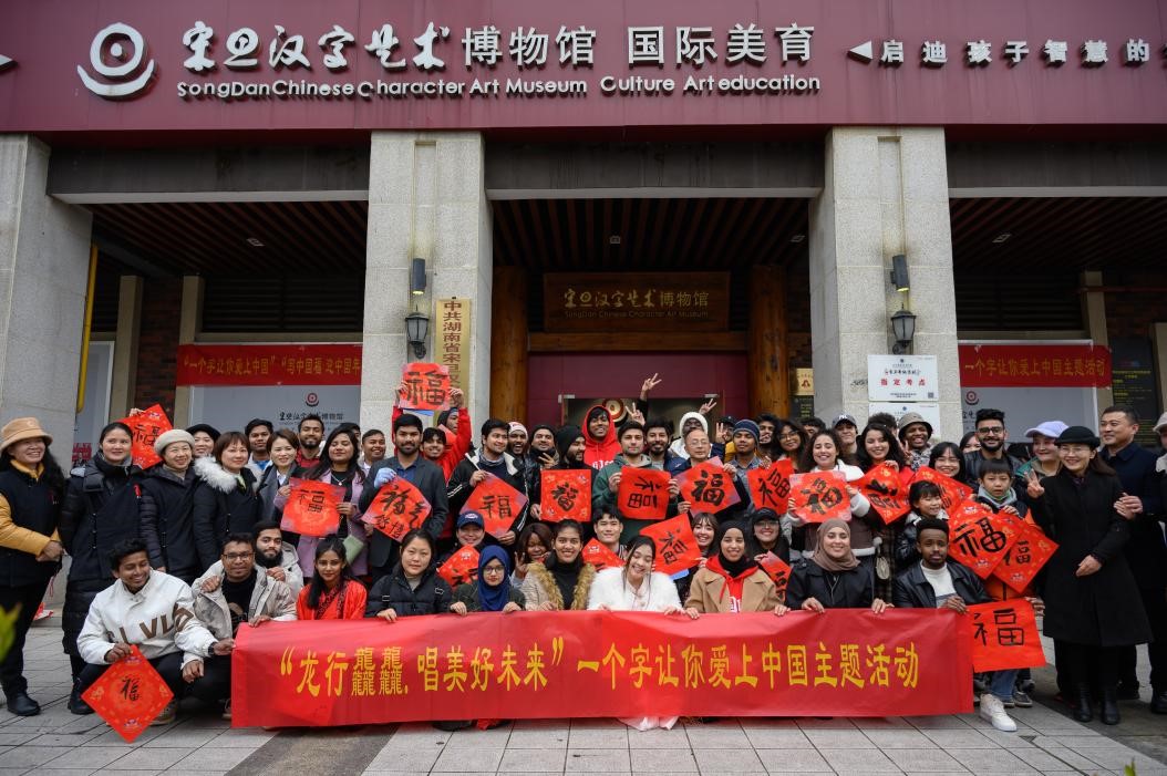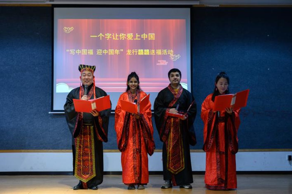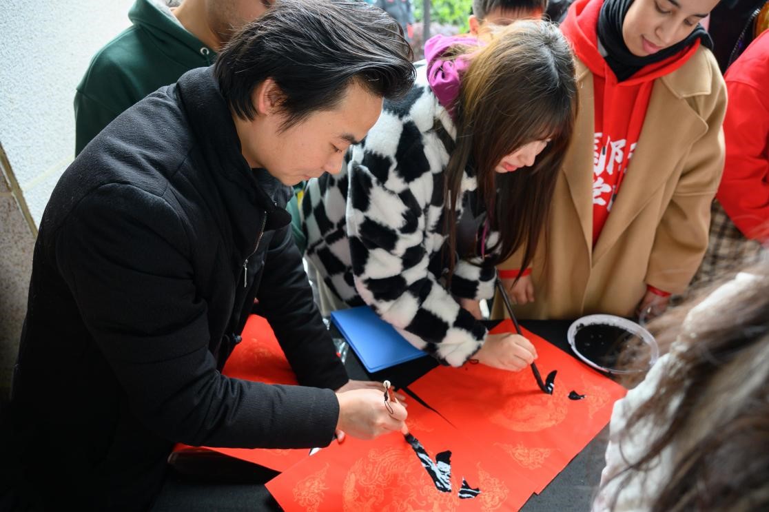 “祝福你,遂你冲天志,百尺竿头高起......”一首脍炙人口的《祝福你》引起现场阵阵欢呼。1月30日下午,国际工学院50余名来华留学生赴湖南省宋旦汉字艺术博物馆开展“一个字让你爱上中国”“写中国福 迎中国年”龙行龘龘迎新春活动。