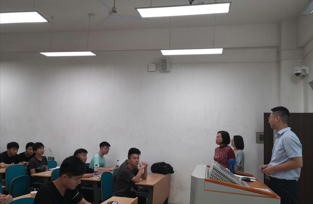 为全面了解新学期教学工作运行情况,切实保障开学教学秩序,9月2号,正式上课第一天,校党委委员兼国际学院党总支书记付嫦娥、党总支副书记吴振华、副院长秦卫星、甘海鹰率领我院教学管理人员和学生辅导员分赴文科楼和工科楼三号楼检查新学期开课情况。