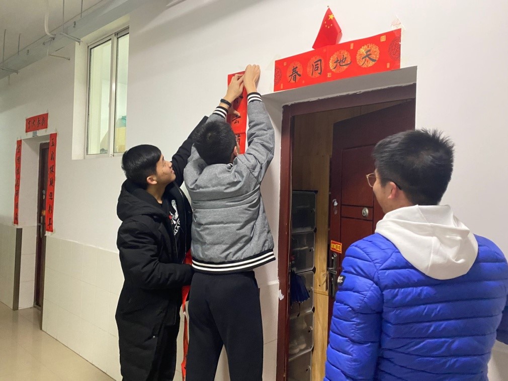 临近寒假,MG冰球突破官网2019级教学改革试点班的曲梓涵、梁礼武自习回来,看到学弟正在宿舍门口贴春联,送来新年礼物,他们一边帮忙贴好春联,一边感慨“学弟学妹太暖心!卡片和糖果太甜了!”