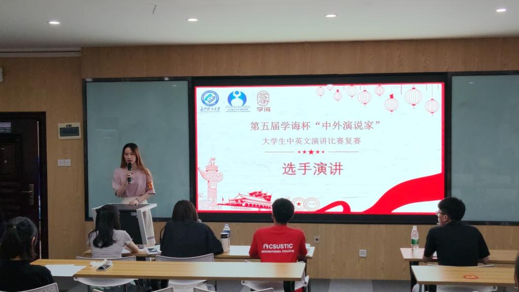 在中国共产党成立100周年之际,为弘扬中华民族先进文化,激发广大学生的爱国热情,丰富学生的课余文化生活,推动文明和谐校园建设。5月14日18时,我院在新能源一号楼举办了学诲杯"中外演说家"大学生中英文演讲比赛复赛。学院英语嵌入式教学合作方学诲教育曾耘、张卓、何千帆、陈阳阳出席本次比赛评委。本届“中外演说家”演讲比赛,共有来自15个学院的106名学生报名,经过初审,晋级复赛78人。