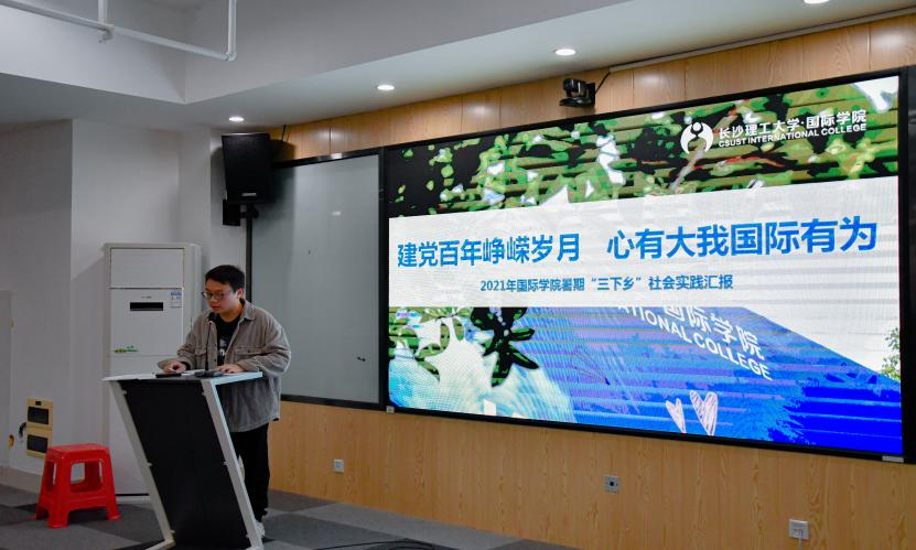 倪守谦首先汇报了学院的暑期三下乡社会实践工作。他从国际学子参与的思想提升、文化体育与身心发展、学术科研与创新创业等方面,回顾了学院2021年暑期三下乡社会实践活动开展情况和活动成效。