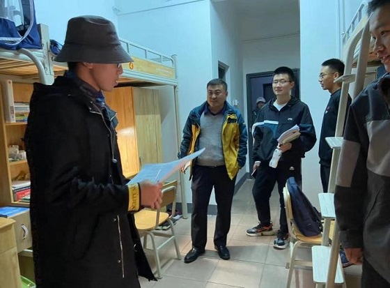 乔法光一行深入学生宿舍,了解学生的安全用电、晚归等情况,叮嘱同学们做好安全防范、养成良好的安全意识,并与学生就学习生活状况进行了交流。本次检查主要对学生宿舍中使用违章电器、使用明火、私拉乱接电线网线、使用劣质接线板等各类安全隐患,以及学生擅自更换宿舍或床位、外宿、留宿他人、养宠物、寝室矛盾等各类对安全造成隐患的行为进行了深入排查。