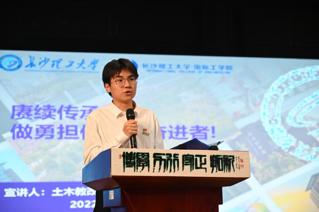 青春路上的学长是榜样高年级学生代表依次上台作“成长在长理”主题报告。5名优秀学子分别“赓续传承,做勇担使命的奋进者”“勇立潮头,做笃行不怠的追梦人”“笃学致远,做刻苦学习的有心人”“不惧挑战,做新时代的弄潮儿”“多元荟萃,勇做国际远航人”为题,——讲述了自己对“国际化视野与家国情怀”的感悟,分享自己大学学习的经历与收获,告诫新生要珍惜在大学校园的美好时光,立志祖国和人民最需要的地方贡献自己的力量,保持应有的闯劲、锐气和担当,踔厉奋发