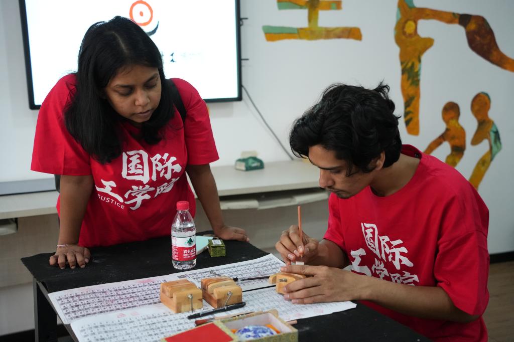 为庆祝第14个联合国中文日,积极响应教育部中外语言交流合作中心关于开展国际中文日活动倡议,4月20日下午,MG冰球官网组织中外学生前往湖南省宋旦汉字艺术博物馆,开展“全世界一起来说中文·一个字让我爱上中国”国际中文日主题活动。MG冰球官网来自孟加拉国、越南、苏丹、斯里兰卡等12个国家的国际青年代表和中国学生代表共同参与。本次活动也是MG冰球官网国际工学院“国际青年文化沙龙”系列活动之一。