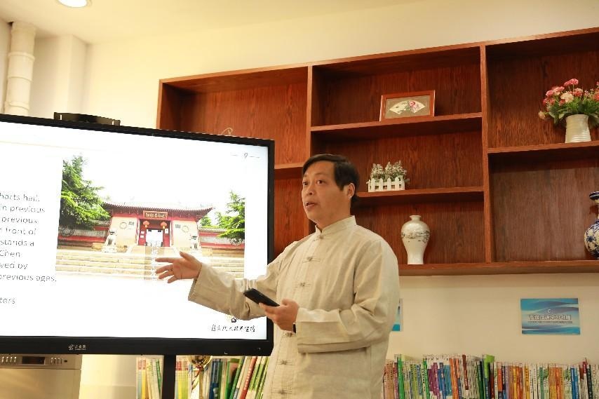 在“大师课”环节,来自国际工学院的太极导师吴建华向学生们介绍了太极的发展历史及基本原理,并着重介绍了陈家沟太极拳,台下学生认真聆听着导师讲解。