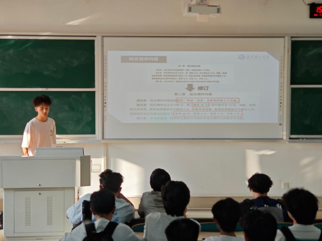 班会围绕文件学习、安全教育和消防安全宣传月活动三个方面展开。各班级组织学生认真学习了《MG冰球突破官网学生考试违规处理办法》《MG冰球突破官网学生综合测评办法》等文件,帮助学生细致了解校纪校规、评奖评优等内容;同时以案例分析、专题研讨等形式,提醒学生严守交通规则,持续提升防骗反诈、食品卫生、毒品预防等安全意识,并结合消防安全宣传月活动,科普消防安全知识,增强学生消防安全素质;最后,班主任结合班情与同学们亲切交流和沟通,引导同学们以实际行动建良好班风学风,提高校园安全防范意识和自我防护能力。