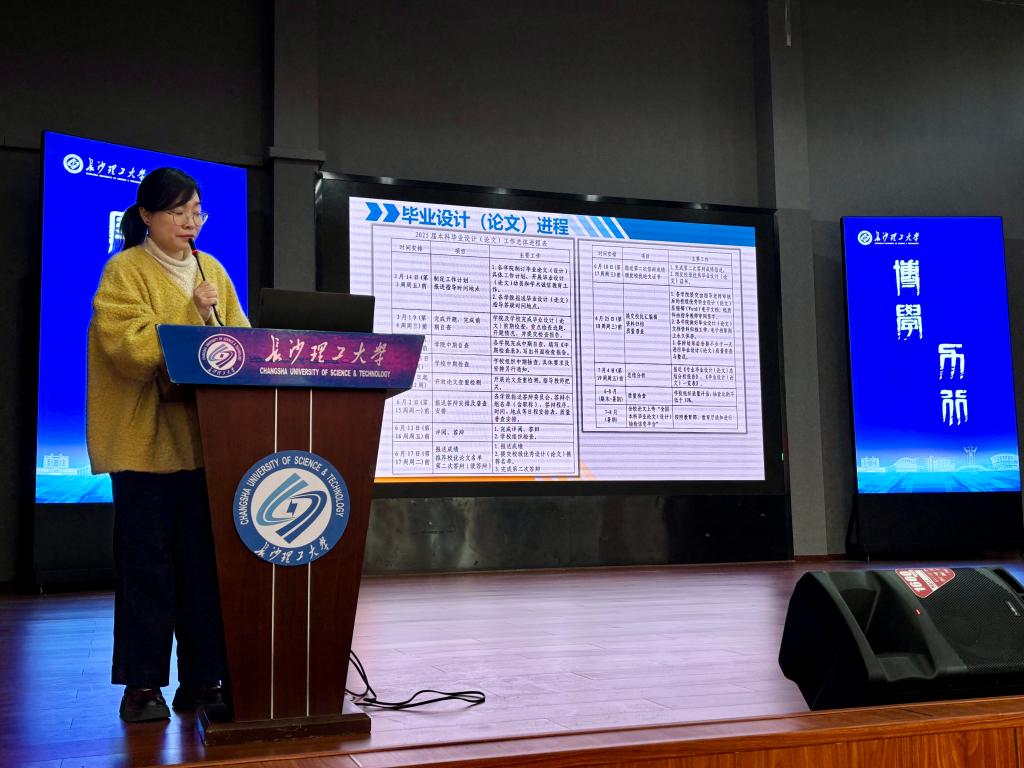 首先,罗帅就学生毕业条件、学分修读整体情况、课程学分认定等内容作详细介绍,提醒学生要密切关注考试安排、学分修读进度等重要事项。随后,余志介绍了毕业设计(论文)工作总体进程,明确各环节时间节点,并再次强调学术诚信的重要性。唐宏敏主要从春招就业形势、就业平台及信息获取、签约流程、考研情况四个方面介绍毕业生就业工作推进安排,结合往年数据,分享就业经验。魏涛介绍了毕业生日常教育管理规定,并开展了防电信诈骗等安全教育。