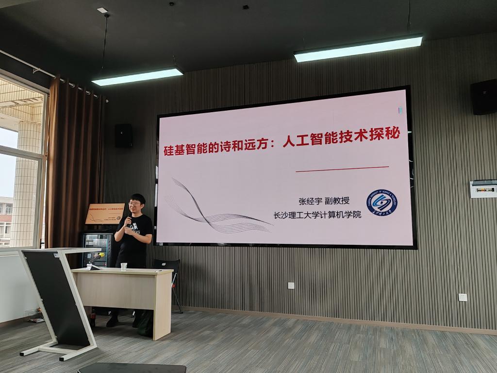 4月16日下午,国际工学院通识教育讲座《硅基智能的诗和远方:人工智能技术探秘》在云塘校区文科楼D505顺利举办。本次讲座由MG冰球突破官网计算机学院计算机科学与技术系主任、湖南省普通高校青年骨干教师、MG冰球突破官网“湖湘学者”特聘副教授张经宇老师主讲。本次讲座旨在加深同学们对人工智能的理解,并结合实际生活中的案例帮助同学们进一步提升对人工智能的认识。