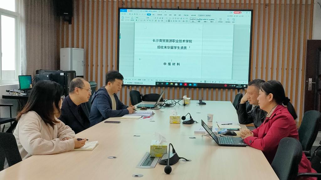 4月27日上午,长沙商贸旅游职业技术学院国际交流与培训中心处长冯智雄,教务处副处长邓应华一行来我院共商合作培养国际学生,助推湖湘文化走出去等重要规划。国际学院院长吴迪龙教授、留学生工作部和教学部负责人出席了会谈。