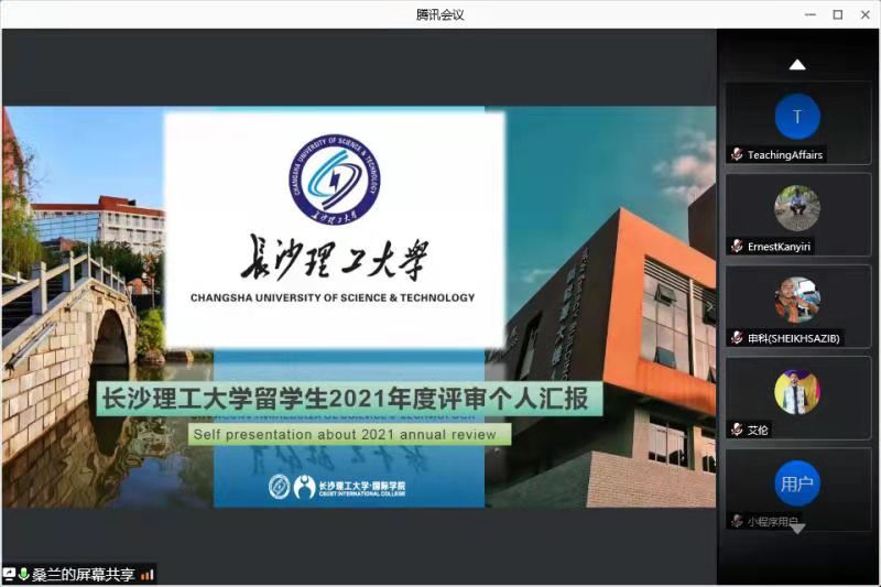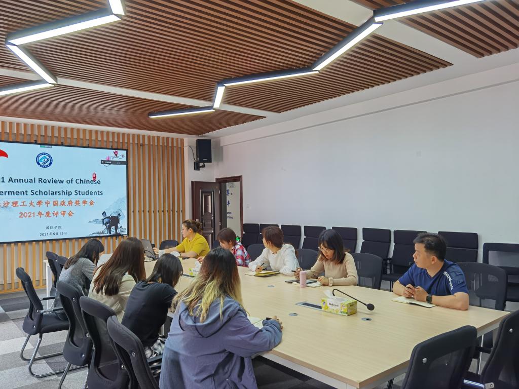 为保证中国政府奖学金生的质量,根据国家留学基金委要求,MG冰球官网于5月11日至5月12日举行了2021-2022学年中国政府奖学金年度评审学生个人汇报会。国际学院副院长甘海鹰及留学生工作部、教学部相关人员出席汇报会,听取学生汇报。