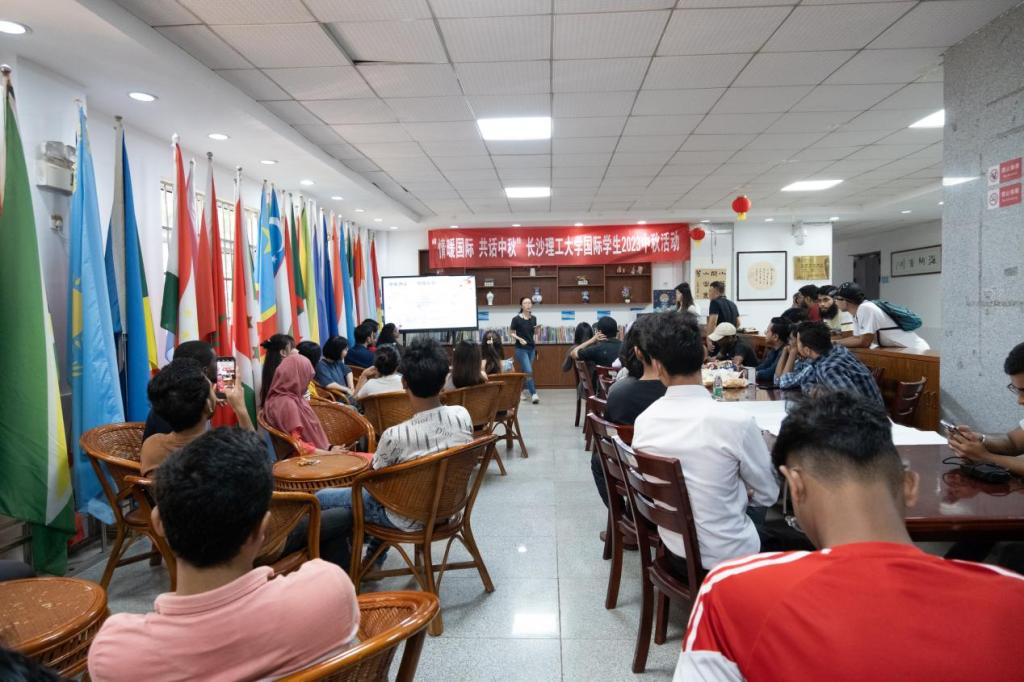 9月29日下午,国际学生中秋传统文化体验活动在留学生公寓大厅举行。50多名来自苏丹、孟加拉、泰国、乌兹别克斯坦等“一带一路”沿线国家的国际学生齐聚一堂,了解中秋神话、习俗与诗词,篆刻汉字,共印祝福庆佳节,品尝圆盘月饼,感受“中国味道”的同时,体验中国传统文化。