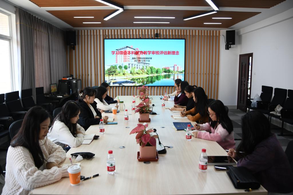 2023年10月31日下午3点,MG冰球突破官网国际工学院语言教研室在新能源416室召开会议,学习领会本科教育教学审核评估新理念,以及讨论如何对课堂教学与相关材料进行整改。黄月华副院长、教务办余志主任及语言教研室全体教师参加了本次会议。