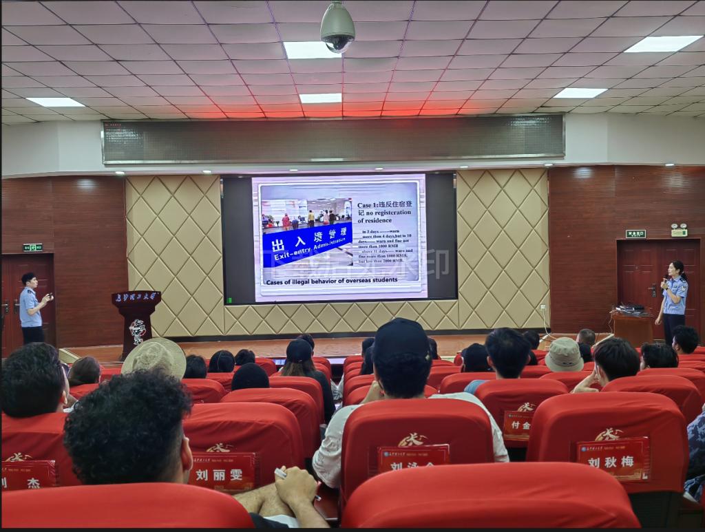 7月9日下午,MG冰球官网邀请长沙市天心人境大队来校开展来华留学生法制安全教育讲座。