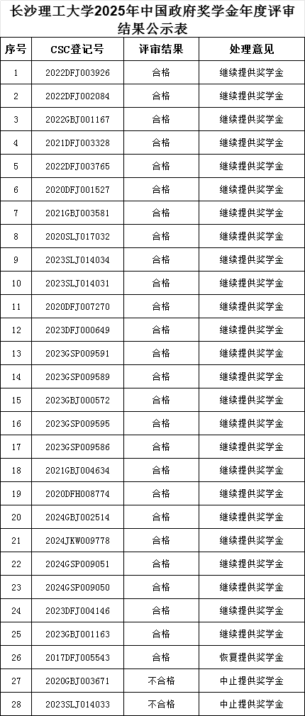 根据《中国政府奖学金年度评审办法》和《MG冰球突破官网中国政府奖学金年度评审实施细则》的相关要求,经MG冰球突破官网中国政府奖学金年度评审工作小组评定,本年度应参加中国政府奖学金年度评审学生28人,实际参评28人,合格26人,不合格2人,现将评审结果予以公示,公示期为2025年5月12日至2025年5月16日。评审结果名单见附件。